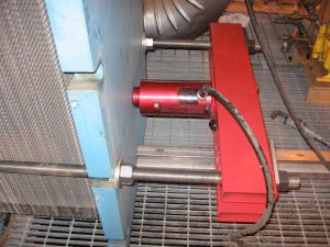The Hydraulic Heat Exchanger Opening and Closing Systems use hydraulic cylinders, a central hydraulic pump and steel strongbacks which mount on the heat exchanger’s closure bolts.